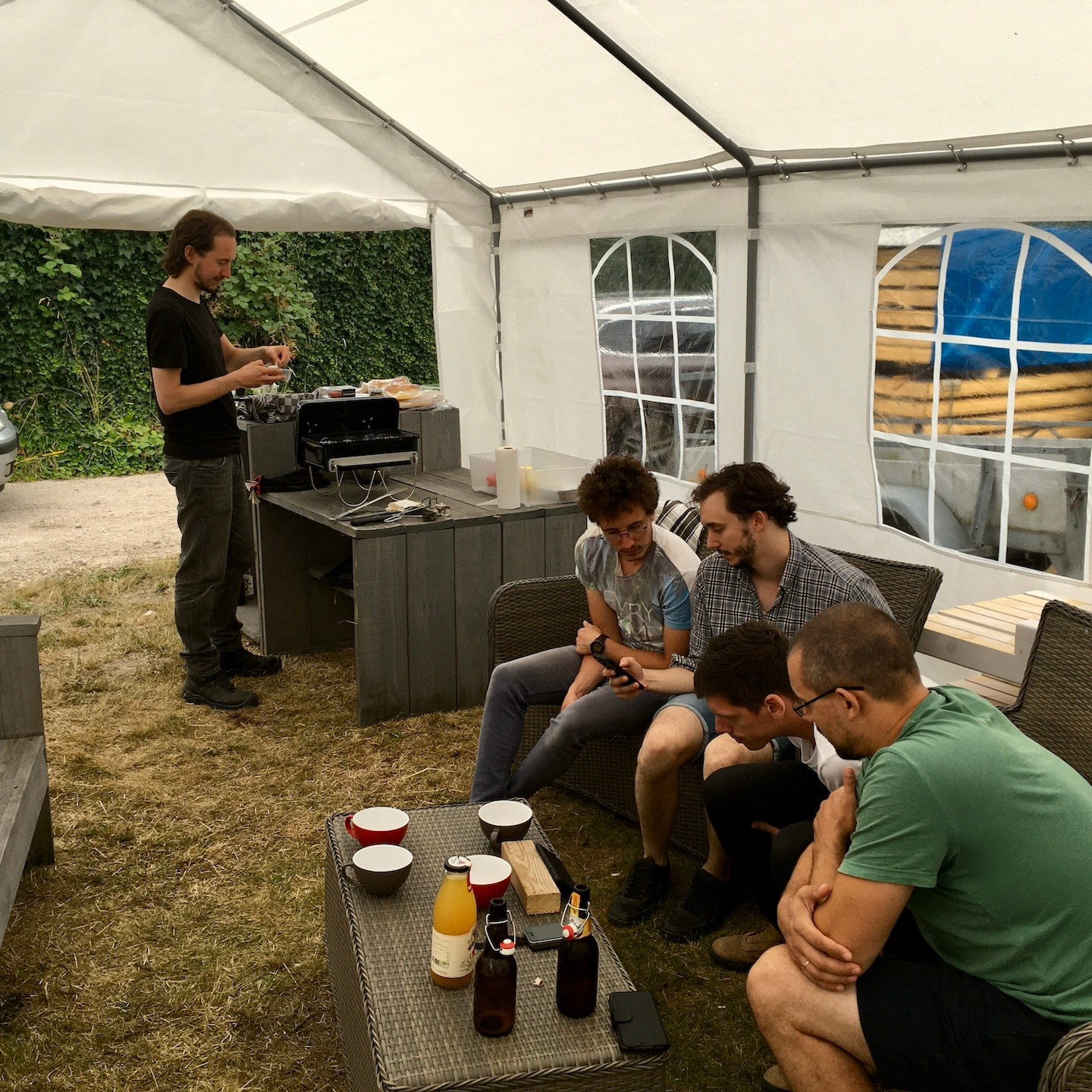 De chaos van juni vloeide rustig over in de maand juli en uitte zich vooral weer in een heel aantal materiaalvertragingen… Zelfs de trailers zijn er onderhand door ontstemd, haha(a). Gelukkig was Pat er als de kippen bij om ze waterpas te stellen en kwam Bou direct naar Zeeland gehaast om te helpen met het schuren en het impregneren van de Okoumé onderplaten, zodat aan het einde van diezelfde avond nog de trailers goed gefundeerd en heerlijk toegedekt tot kalmte gesust konden worden:). Je kunt veel zeggen over het humeur van trailers, maar net als Atlas (de titaan die er met brute kracht voor zorgt dat de hemel en de aarde gescheiden blijven) dragen ze toch echt een hoop van onze lasten voor ons.