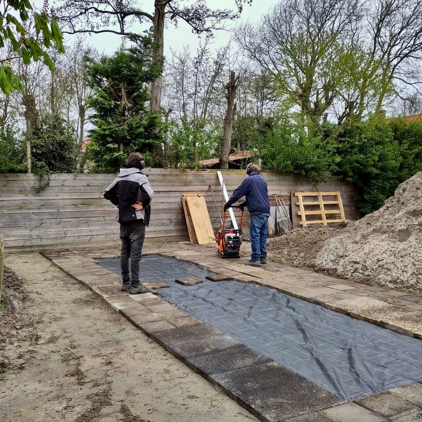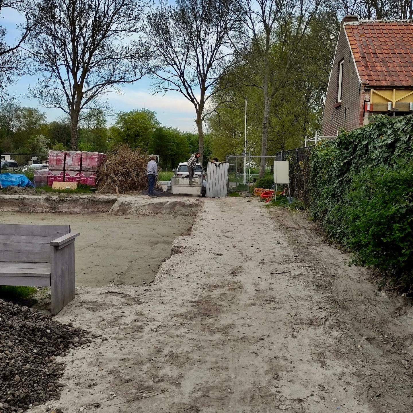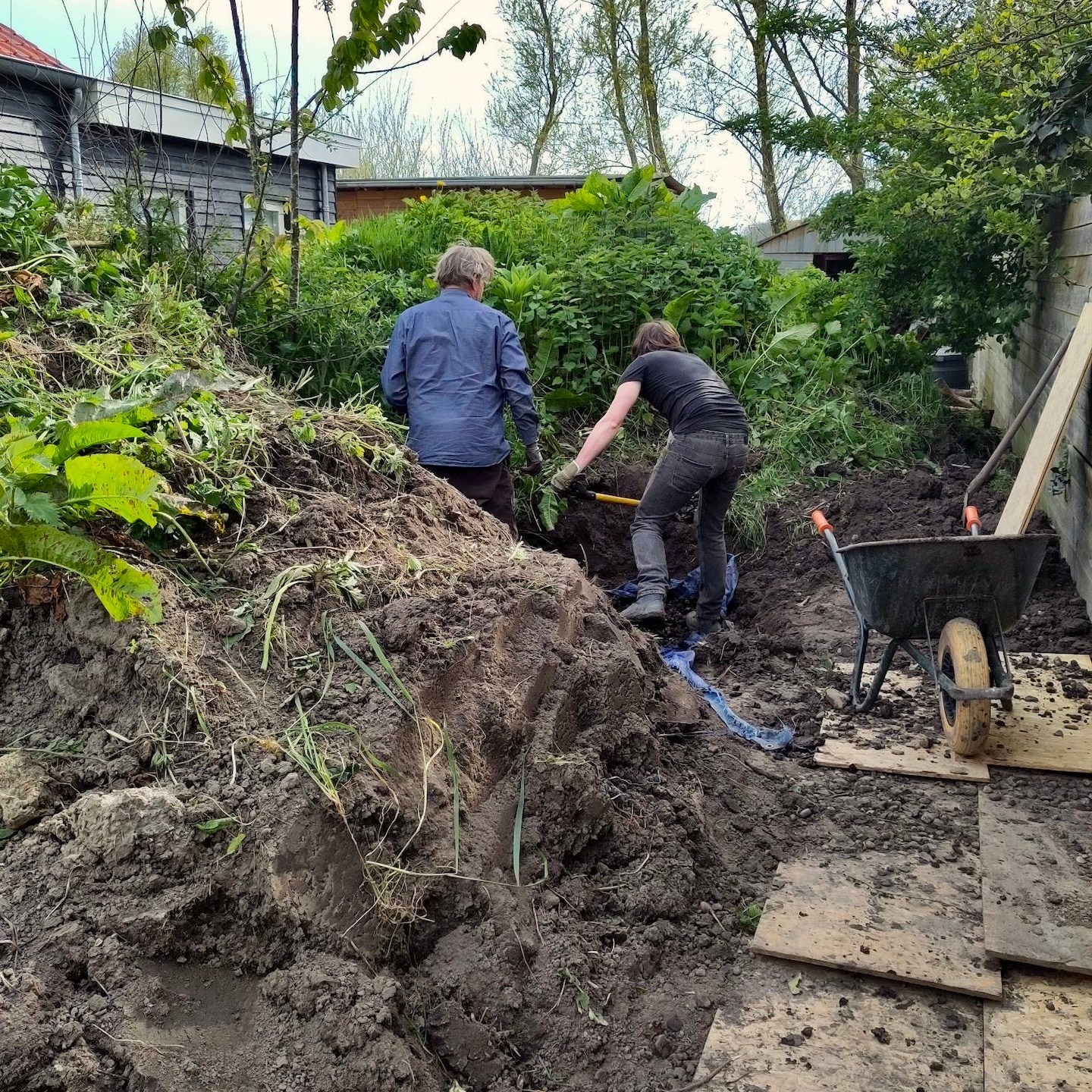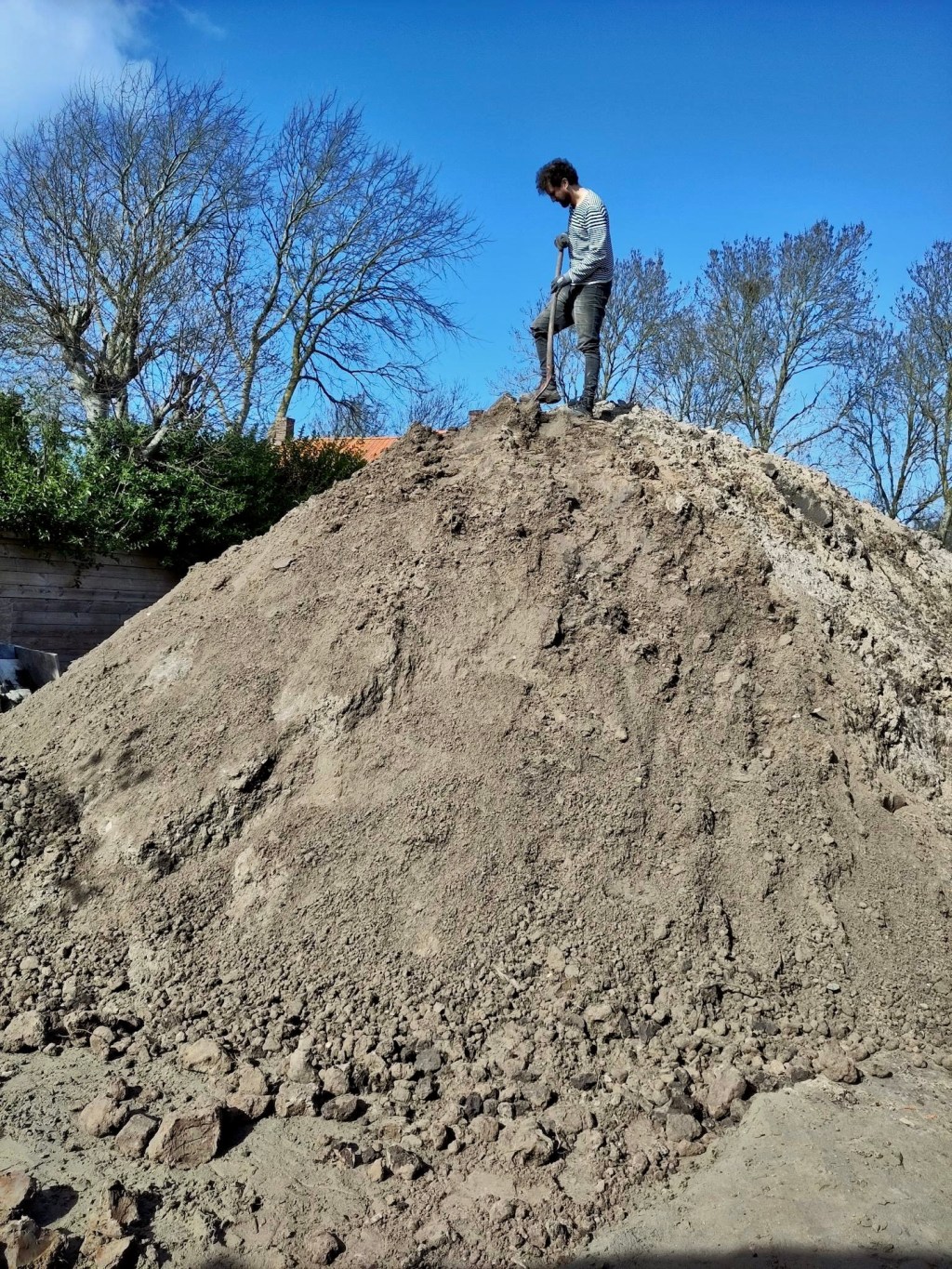 Zo begon het overgrote deel van deze eerste helft van de maand vooral met het (veelal in solitaire vorm) opruimen van de beide trailers, verplaatsen van Pats bouwmaterialen naar de bouwschuur (gelukkig kon de aanhanger vanwege de uitgegraven bouwput ook gewoon lekker naar achteren, haha…ach ja, voor we het weten is die bouwput weer dicht en kunnen we er weer fijn en makkelijk langs met alles toch? Nu nog maar even geduld hebben, toch?) en het verplaatsen van kleiige grond, en nog wat meer zandige kleigrond en hier en daar nog wat met grond, zand en wortels gemixte klei (om Dory (van Finding Nemo mensen…ken je klassiekers…)) te parafraseren: “just keep digging, digging, digging, just keep digging(a)”). Iets wat verder enkel en alleen maar werd afgewisseld met het verplaatsen van een hoop zware tegels, stenen, keien en bouwpuin(a). Halverwege april had ik uiteindelijk wel meer dan genoeg EXP (voor de niet-gamers onder ons ‘ervaringspunten’) opgedaan en evolueerde ik (mede gesteund door de altijd trouwe Saartje) in een heuse slavendrijver, haha(a). Rob en Jolanda (en Saartje) die meegewaaid waren uit het noorden, dachten wellicht even rustig langs te komen in Zeeland, maar daar heb ik even een stokje, of beter gezegd, een schep tussen gestoken, hihi(a). Nee hoor, ze waren (zij het wellicht enkel in theorie, want de bouwkavel moet je echt ervaren wil je weten wat je te wachten staat, haha(a))) compleet op de hoogte van de situatie hier en zodoende volledig (voor)bereid om te komen helpen en hebben daarnaast zelfs (met ons erbij) ook nog een beetje kunnen genieten van al dat wat Zeeland allemaal te bieden heeft:).