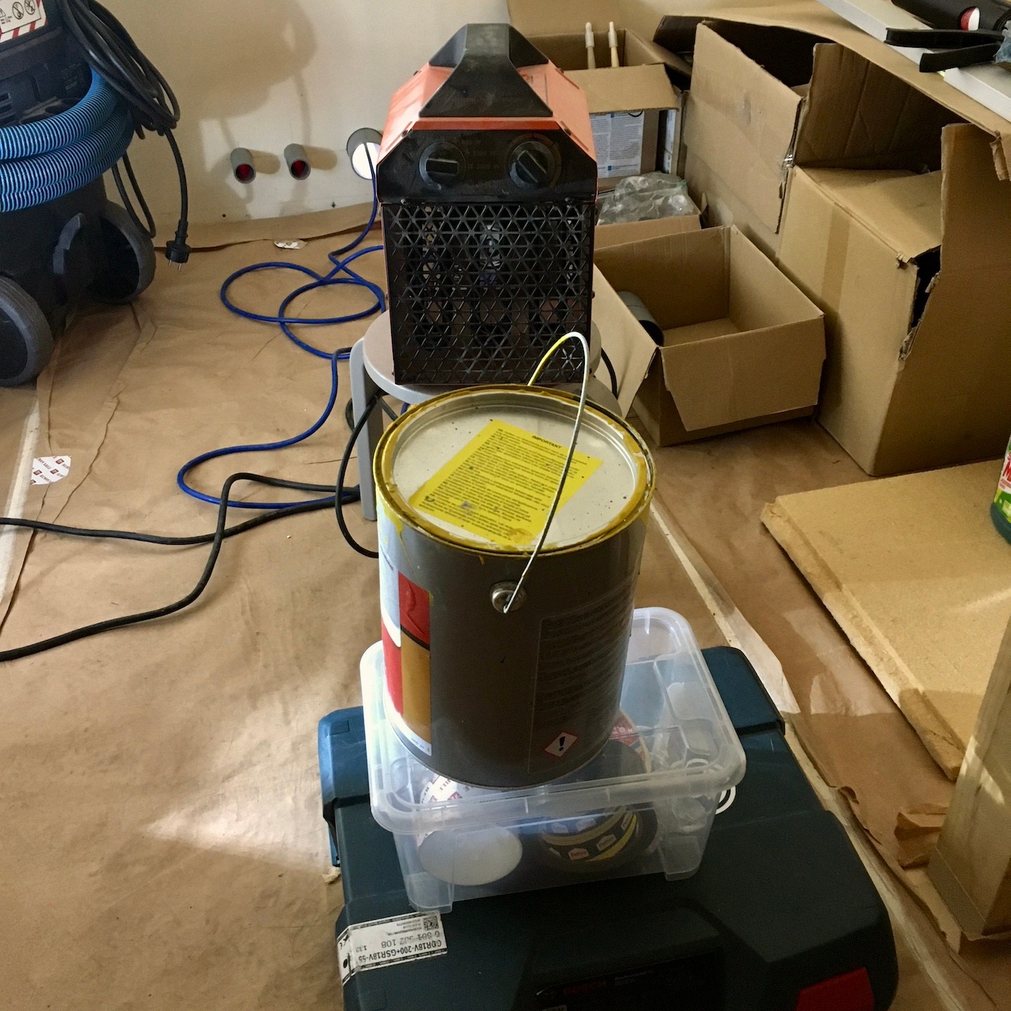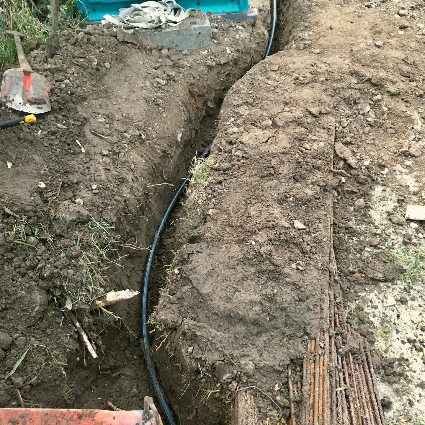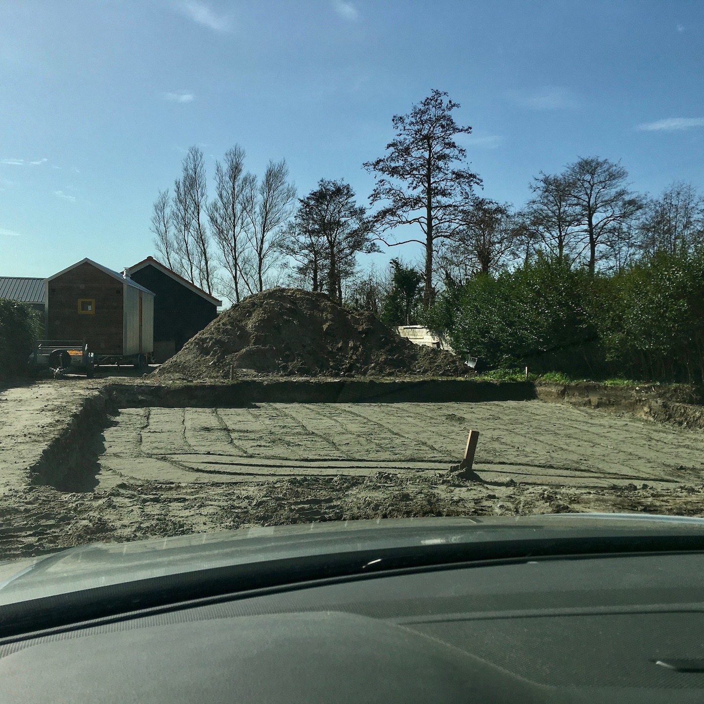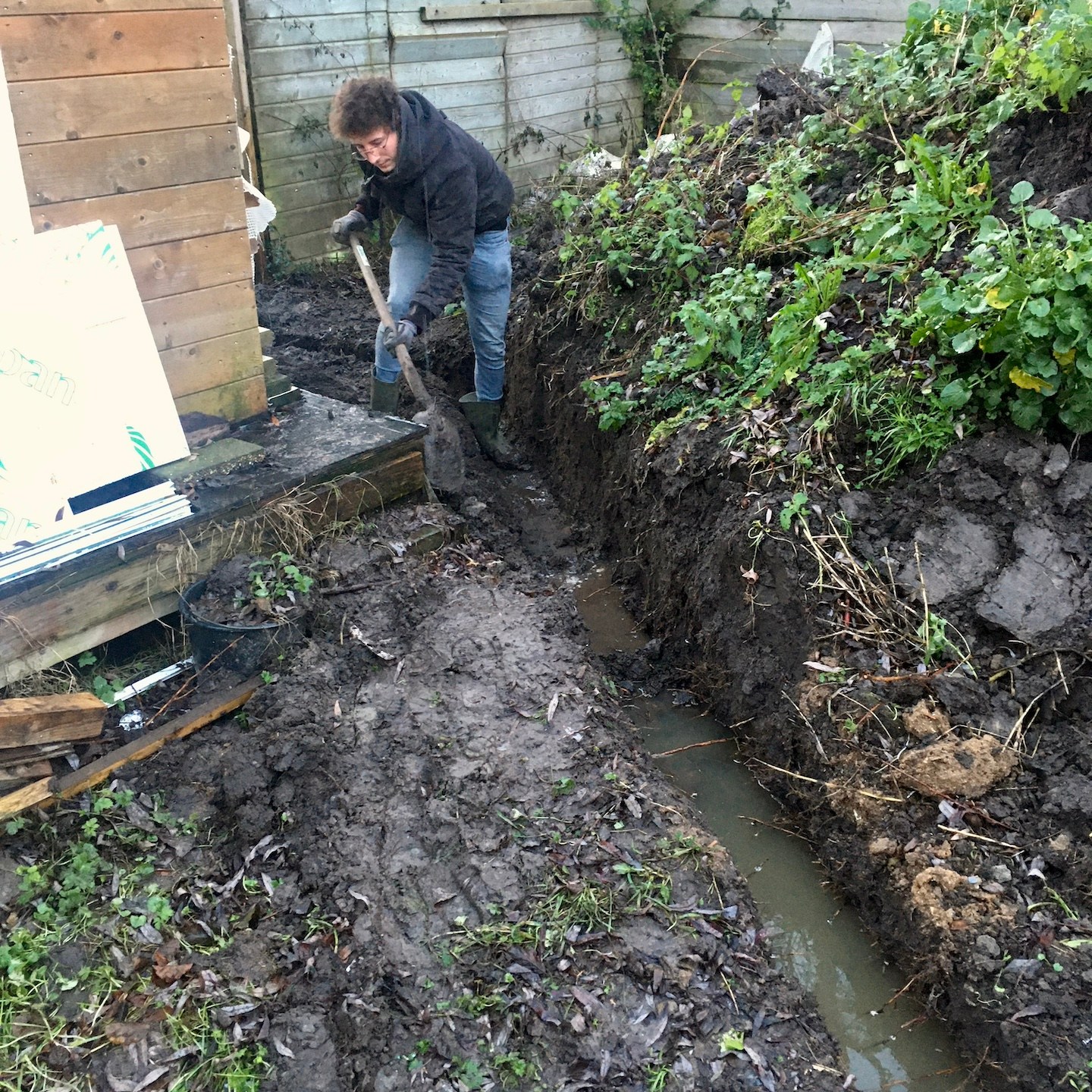Ach ja, dat (soort van) Spartaanse ochtendritueel was denk ik ook gewoon heel hard nodig om ons mentaal en fysiek voor te bereiden op alle werkzaamheden die ons gedurende de koude en natte dagen te wachten stonden, beginnende met de natuurlijk bijna niet meer weg te denken aanhoudende Sisyfusarbeid (wat betreft de isolatie verplaatsen kwam het eindpunt in zicht nu de overtollige isolatie (gelukkig vrij snel) verkocht was, jeeej, maar wees niet getreurd er blijft nog altijd genoeg te verplaatsen en te heen en weren, haha), maar daarnaast in december en januari vooral ook een geheel nieuwe vorm van haast slaafse arbeid, namelijk het volledig aanleggen van de ondergrondse infrastructuur op de kavel, wat normaliter al best wel veel graafwerk is, maar extra interessant is wanneer je met je eigen spierkracht tientallen meters lang een halve meter diep spoor door een al aangetrilde bouwweg of kleilaag moet graven die ook nog eens semi-bevroren is (pfffff, ik begin haast medelijden te krijgen met de “Twaalf Werken uitvoerende Herakles…”). Gelukkig had de vooruitziende Leon van het verleden al in mei van het vorige jaar pikhouwelen aangeschaft, haha (soms doe je van die dingen die op dat moment overbodig lijken, maar ergens opeens op zijn plek lijken te vallen), en kon (vooral) de kinderbescherming daarmee op gepaste afstand worden gehouden (sorry en dankjewel Ray voor het helpen bij al de zware werkzaamheden en het weinige comfort dat wij te bieden hadden).