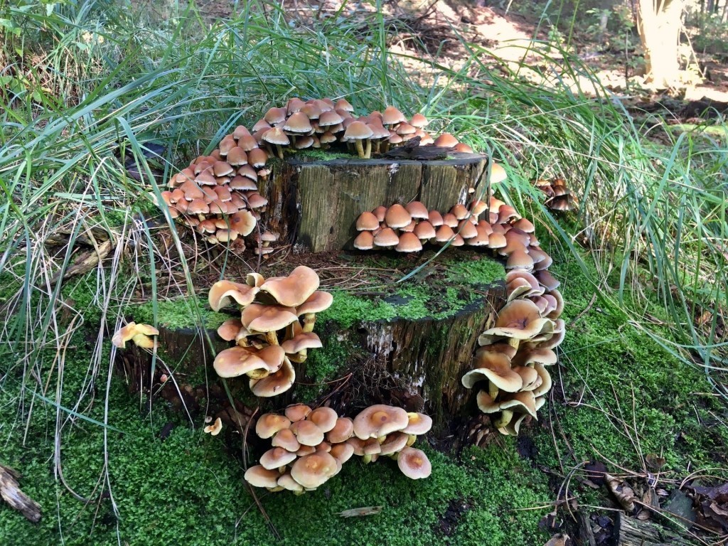 Gelukkig brengt deze tijd ook altijd heel veel moois. Zo verdwijnt enerzijds het overgrote deel van de toeristen plots en keert de rust weer volledig terug in dit kleine dorp (fun-fact: ons is verteld dat ongeveer 75 procent van de huisjes hier vakantiehuisjes zijn…moet je nagaan hoeveel minder mensen hier dan ook rondlopen nu, jeeej) en de omliggende natuurgebieden, terwijl aan de andere kant de paddenstoel-metropoli juist als…tsja, paddenstoelen…uit de grond weten te schieten en in combinatie met de aanhoudende regens van dwarrelende bladeren de normaliter grauwe verharde paden rijkelijk weten te kleuren – zomaar enkele van die dingen waardoor de herfst toch zeker hoog in mijn top vier van mooiste seizoenen staat. Hoe tof zou het trouwens zijn als je zo snel paddenstoelen kon groeien om in te wonen, dan zou het huizenprobleem binnen no-time door Gaia (moeder aarde) en haar leger van Nymphai (natuurgeesten) opgelost zijn, en dan ook nog eens een paddenstoel met wielen eronder (wat overigens de ultieme Mario-Kart cheat zou zijn), zodat je kan gaan en staan waar en wanneer je maar wilt…if only dreams could come true… Oké, ik dwaal nog vóór en bij de eerste foto al weer helemaal af…(focus Leon, je kan dit).