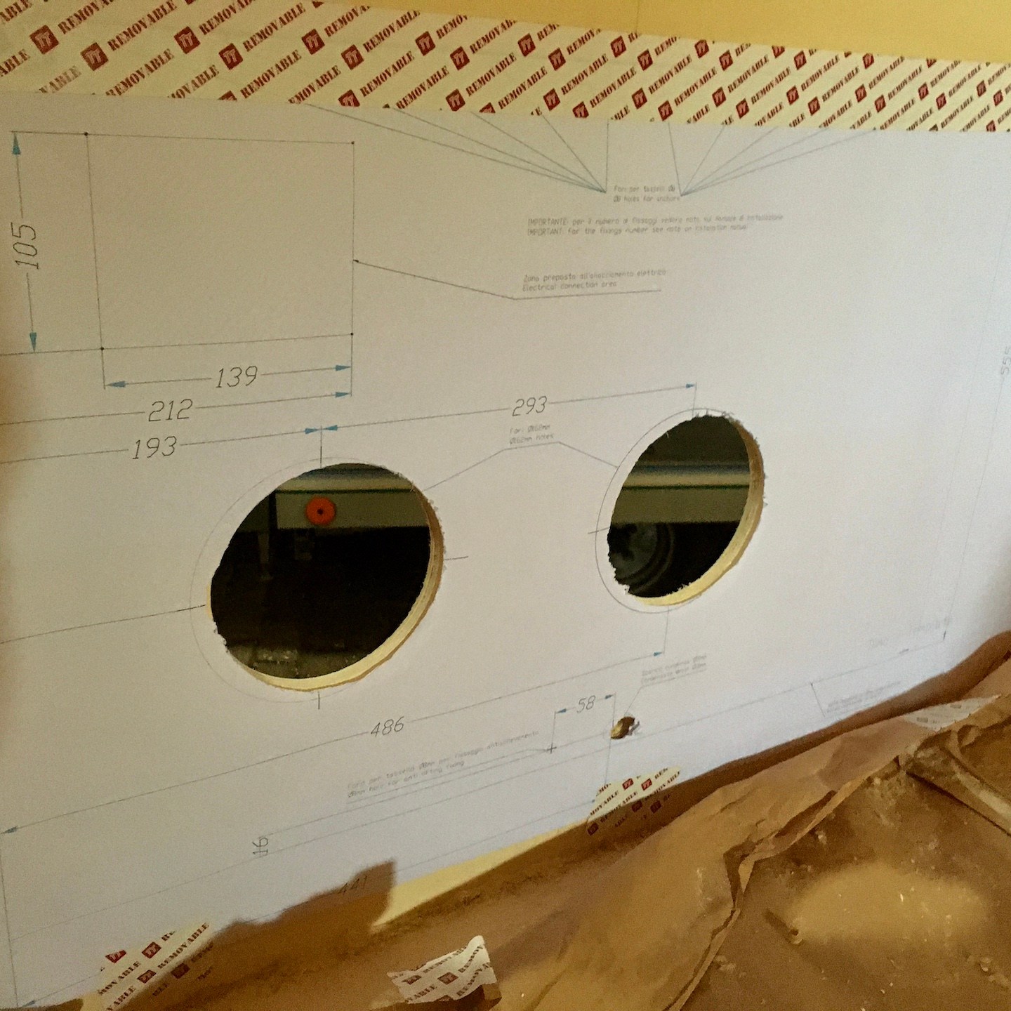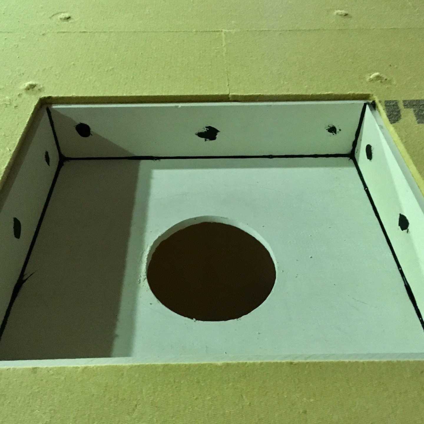 Maar wat gaf dit, met het afronden van het plaatsen van deze platen, direct al een enorm huiselijke sfeer – ik kan niet wachten om met het interieur aan de slag te gaan, maar dat zal nog steeds op zich moeten laten wachten, want er was en is nog genoeg te doen aan het exterieur natuurlijk. En niet geheel onbelangrijk hierbij was natuurlijk ook het plaatsen van de brandwerende kachelpijp-plaat (van Promatect die we met hittebestendige kit van Fermit bewerkte – die kit ruikt overigens naar drop, haha, niet aan likken Leon…(a)) – want zonder die doorvoer wordt het natuurlijk heel lastig voor Sinterklaas en de Kerstman om cadeautjes te brengen (de échte deadline, dat snappen jullie natuurlijk wel, was dan ook 5 december, hihi).