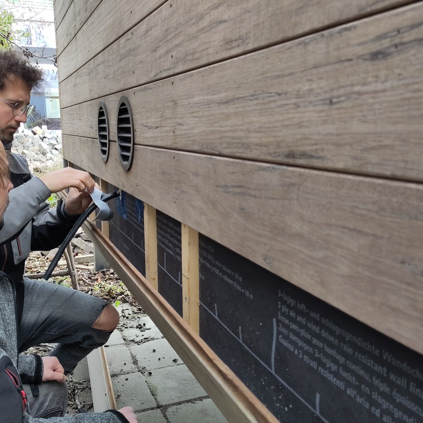 Waar deze periode vorig jaar vooral bestond uit een aantal diepe dalen en een hoop stress (dankjewel geheugen dat je mij zo nu en dan vlak voor het wakker worden volledig (dat wil zeggen met alle belevende toeters en bellen erbij) herinnert aan onder andere dingen als de tentravage van toen…(a)), begon het dit jaar juist met een hoogtepunt en wél in de vorm van ons broertje dat begin november kwam helpen met de gevelplaten en het insectengaas bij Pats huisje. Deze keer overigens met iets minder Wabi-Sabi dan bij mijn huisje het geval was (je mag zelf bepalen of dat een winst of een verlies is, hihi(a)). Oohw en nog wel even een gratis tip hierbij: “Stel je staat boven op een trap insectengaas in de gevel te schroeven en je laat het schroefje vallen…kijk dan eerst even op de magnetische bitjeshouder van je accutollie, voordat je een aanzienlijk tijdje op je knietjes over de grond gaat zoeken (of je moet ervan houden om op je knietjes tijd te verdoen natuurlijk, maar dat laat ik verder aan eenieder zelf over, haha(a)).