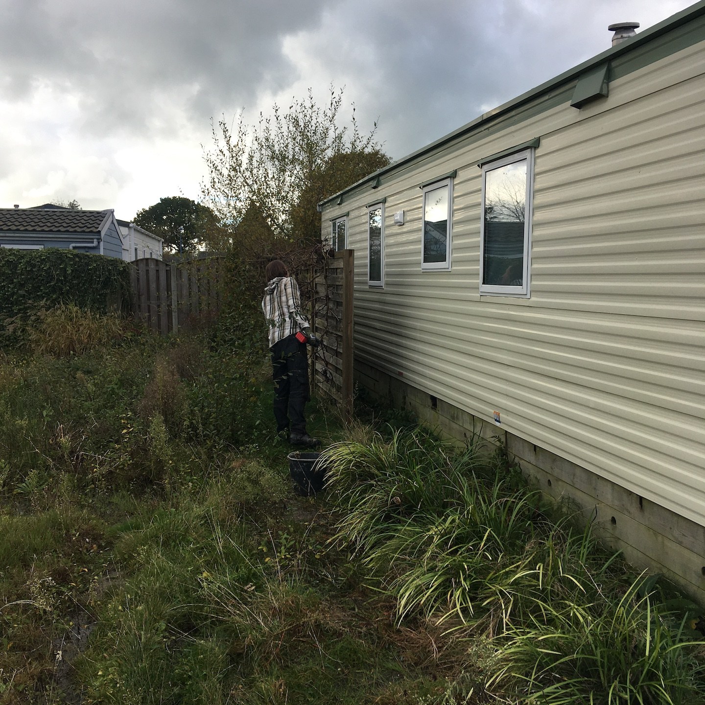 Na deze toffe eerste helft van november volgde echter het nieuws dat wij wellicht begin december al de stacaravan uit moesten zijn, wat met nog een enkele week te gaan en nog geen alternatieve slaapplek best wel wat stress veroorzaakte…zelfs alle kerstmuziek kreeg last van Freudiaanse versprekingen…“It is gonna be a lonely homeless Christmas…” en “Last Christmas, I gave you my heart still had a home…” (al kan je daar natuurlijk ook over twisten…haha(a)), enfin, Pat en ik hebben tussen de stress door gelukkig nog wel een hoop gelachen, maar vanaf dat moment ging er helaas ook extra veel tijd naar het verkoop- en verplaatsklaar maken van de stacaravan en het ontruimen van het perceeltje dat eromheen lag. Ik noem het hier ook écht ontruimen, want pffff…wat verzamelen sommige mensen toch een hoop troep in hun leven… Gelukkig zit tussen alle lelijke en hier en daar vanzelf uit elkaar vallende ellende van het Engels “esthetische” van de oude stacaravan wel zo nu en dan weer iets moois, zoals dit hele mooie minibosje mos:). Go mos! (Weet je trouwens dat er in (in ieder geval) Japan “mos-clubjes” zijn, waarbij je met een enkel ander persoon of een klein groepje mensen al wandelend mos gaat bestuderen. Dat klinkt echt mega-ideaal in mijn oren:), jammerbammer helaas echter dat Japan zo ver weg is…).