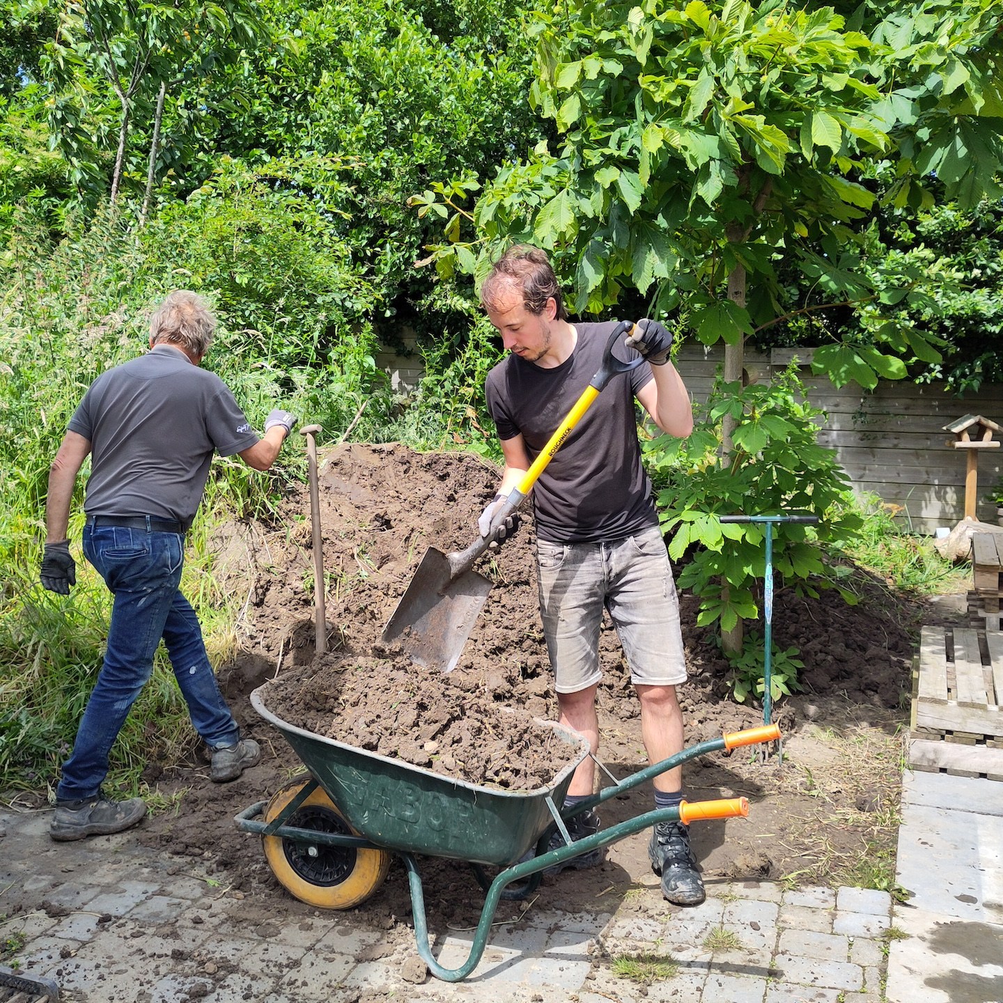 Waar waren we eind mei ook alweer gebleven? Oohwja, natuurlijk (hoe kon ik dat haast vergeten zijn(a)) bij het voor mijn gevoel eindeloos aanhoudende ophogen en uitvlakken van de kavel:) (door de vanzelfsprekendheid van het tussen de andere dingen door een soort van continu op orde maken en/of beter gezegd minimaal werkbaar houden van de kavel zou ik haast vergeten dat het – en ik moet hier even mijn enige vijfjarige vriend (die van het speelhuisje in het oosten van het land) quoten wanneer hij Mario speelt – “écht niet normaal is” dat we al zo lang daarmee bezig zijn(a)), iets wat tijdens het schrijven van deze update (zoals sommige foto’s verderop wel zullen tentoonstellen) bij lange na nog niet klaar is(a).