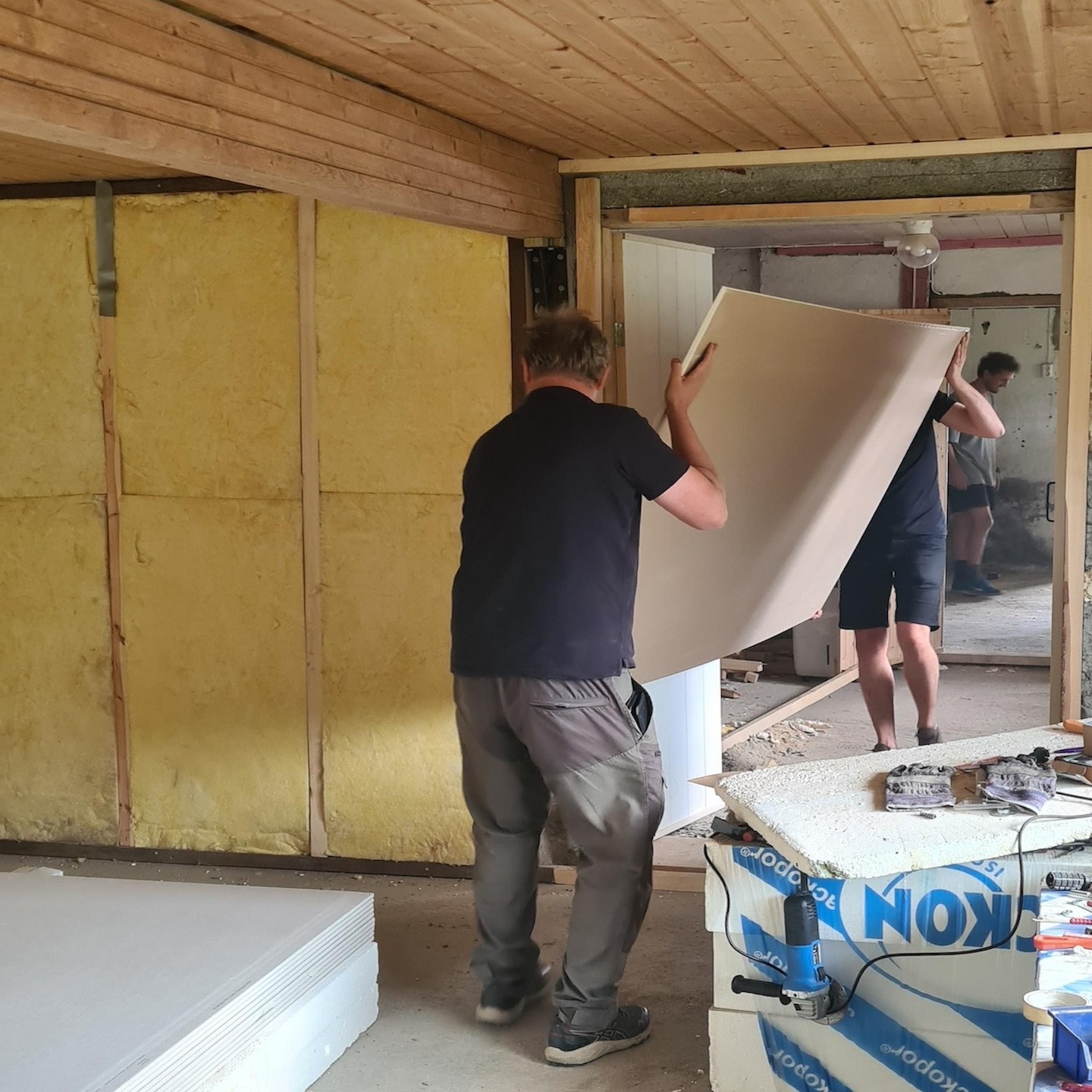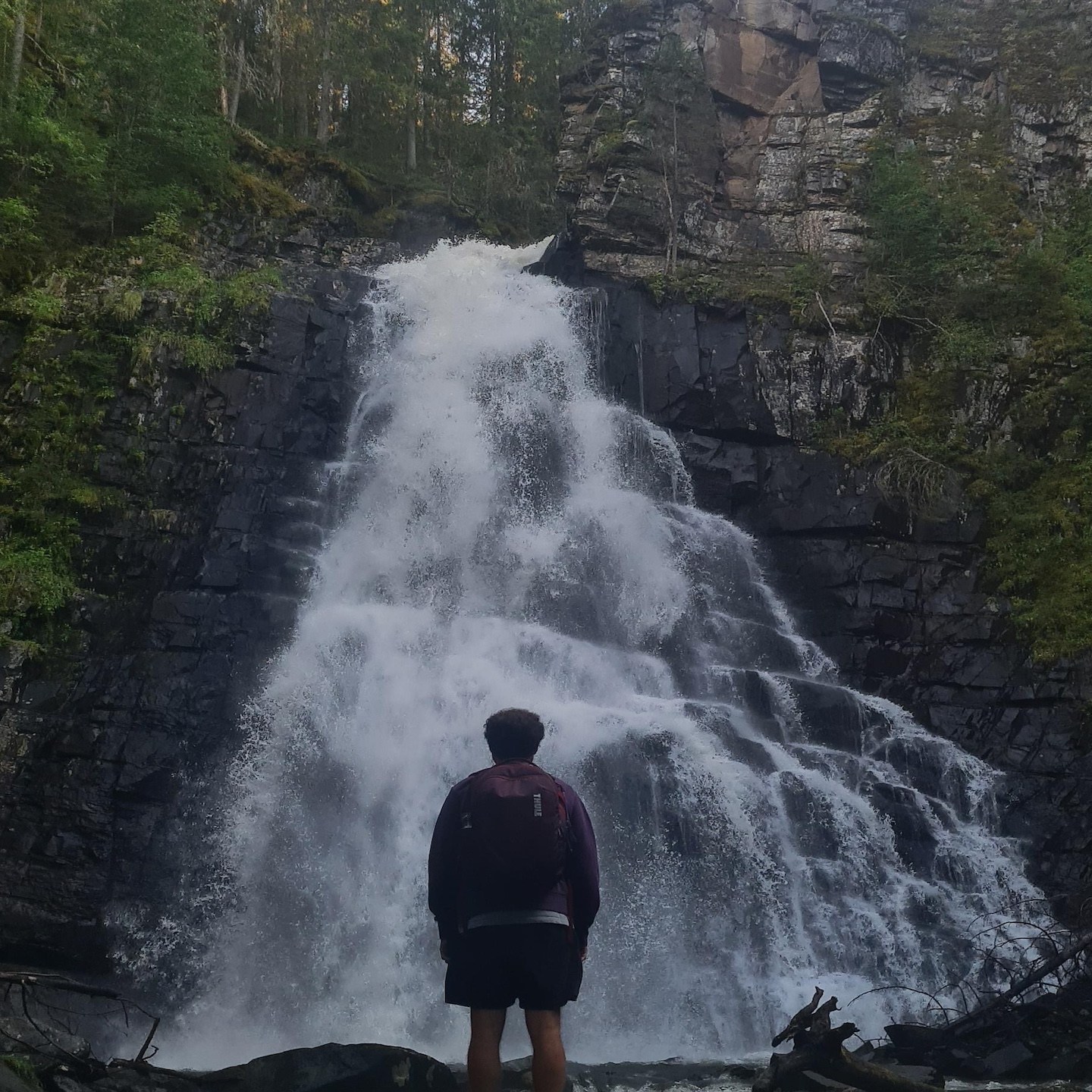 En waar Pat met name bij hem binnen bezig was met oliën, hebben mampap bij hun huis juist het schilderwerk aan de buitenkant en de elektra aan de binnenkant goed kunnen aanpakken en kon ik mij intussen binnenin focussen op het dampdicht maken van voornamelijk hun houtskeletbouw, zodat wij vervolgens gezamenlijk daar de gipsplaten konden gaan plaatsen en (als het goed is) zowel de gehele binnen- als buitenboel daar uiteindelijk goed en op tijd beschermd zijn tegen de altijd aanwezige capriolen(a) van Carpo en Kheimon (seizoensgod (tevens Horai) van de winter):). Oohw en over gipsplaten gesproken, Ray, Pat en ik hebben tussendoor een kleine (als in tijd en niet in afstand, haha:p) roadtrip gemaakt naar familie in Noorwegen, waar onze door de vakantie bijna lui geworden handen op een gegeven moment toch begonnen te jeuken en we zodoende ook even hebben geholpen met het voorbereiden op het klussen van de Legokelder (!:)) daar(a). Dankjewel in ieder geval allemaal voor het helpen bij de “klusafkickverschijnselen”:p en natuurlijk de gezelligheid, maar ook zeker voor het laten ervaren van de prachtige Noorse natuur, waaronder deze mooie nimfen-achtige waterval in hun “achtertuin”:) (de waterval lijkt kleiner hier, maar dat is enkel een kwestie van perspectiefbedrog).