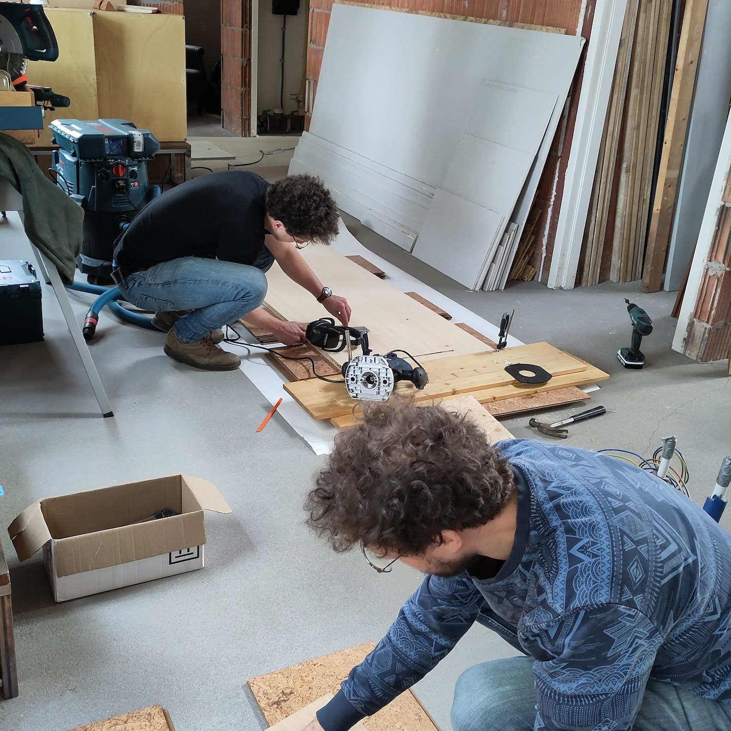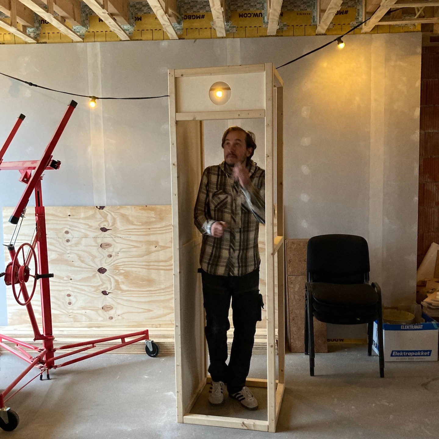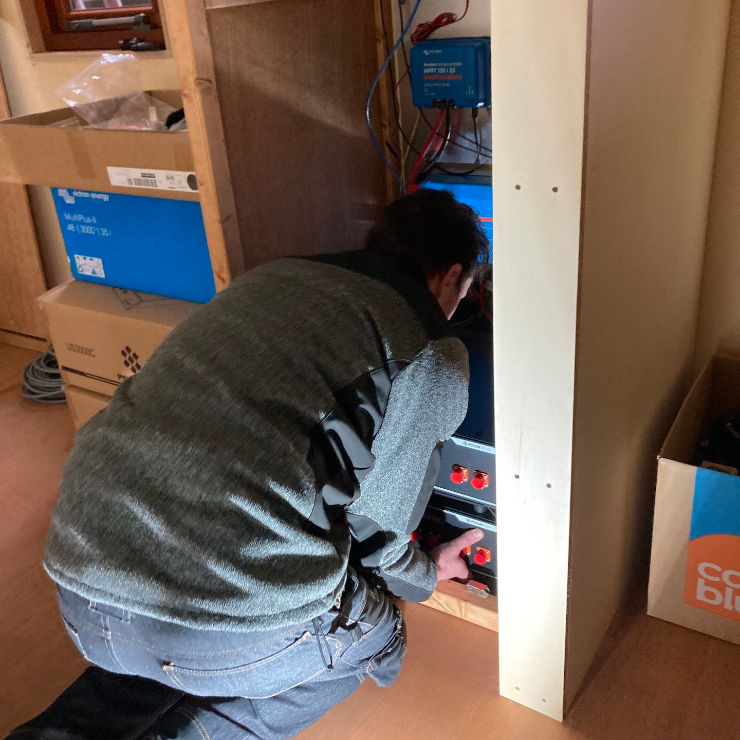 Nu hoor ik je gedurende het lezen wel denken: “Leuk Leon al die veranderingen buitenshuis en ondergronds, maaruh, is er ook nog iets binnenin de gebouwen gebeurd?” Ja zeker wel:), tussen het gewone werkleven, de winterse bouwmoeheid en het blijvend ontwerpen door heeft Pat alle grote delen van zijn huisje kunnen af-oliën, daarnaast een zeer arbeidsintensieve (maar daarmee ook zeker heel mooie) meterkast kunnen bouwen en deze met een klein beetje van mijn hulp (de accu’s wegen veel en de ruimte is schaars) ook aan de binnenkant helemaal kunnen voorzien van het technische hart. Nu klopt het hart weliswaar nog niet, want zijn huisje staat nog in de schuur van andere mensen waar wij op dit moment niet zoveel zijn (het “Frankenstein-momentje” moet later dus nog plaatsvinden(a)), maar met deze stap kan wel de rest van het elektra en interieur bij hem ook uitgewerkt worden en lijkt het nu ook eindelijk een écht huisje te worden daar:), al zal dat (evenals verdere impressies daarvan) nog wel even op zich moeten laten wachten totdat Pat het eindelijk eens is (goed hè Bou:p) met één van zijn ontwerpen van het interieur, haha:p (gelukkig zijn de eigenaren van de schuur nog steeds super relaxt, dankjewel familie Bakker:)). Wordt voor nu dus vervolgd;).